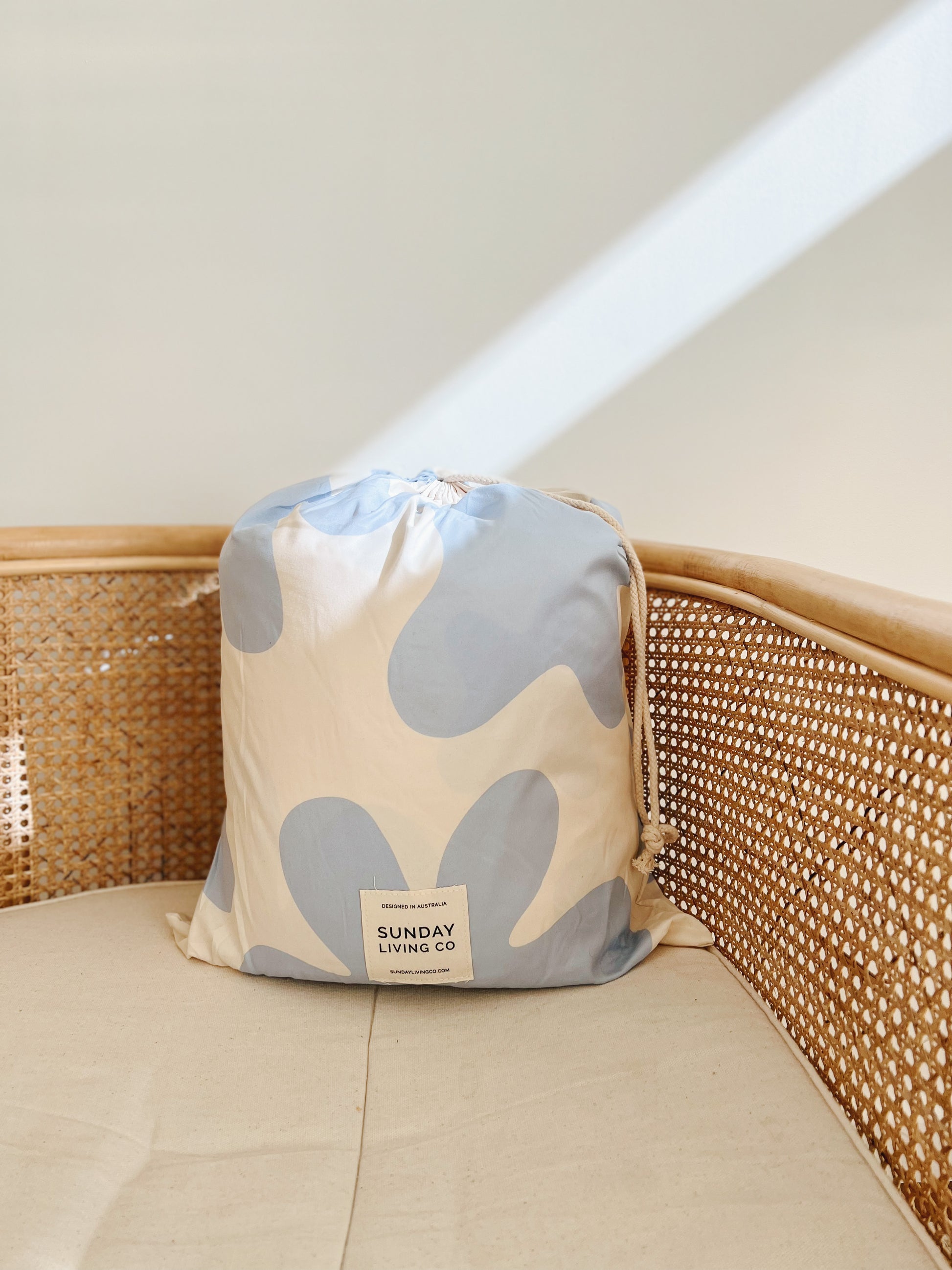 Inspired by Summers florals, Cornflower Blue features large, hand drawn flowers and is essential for any beach or grassy picnic.