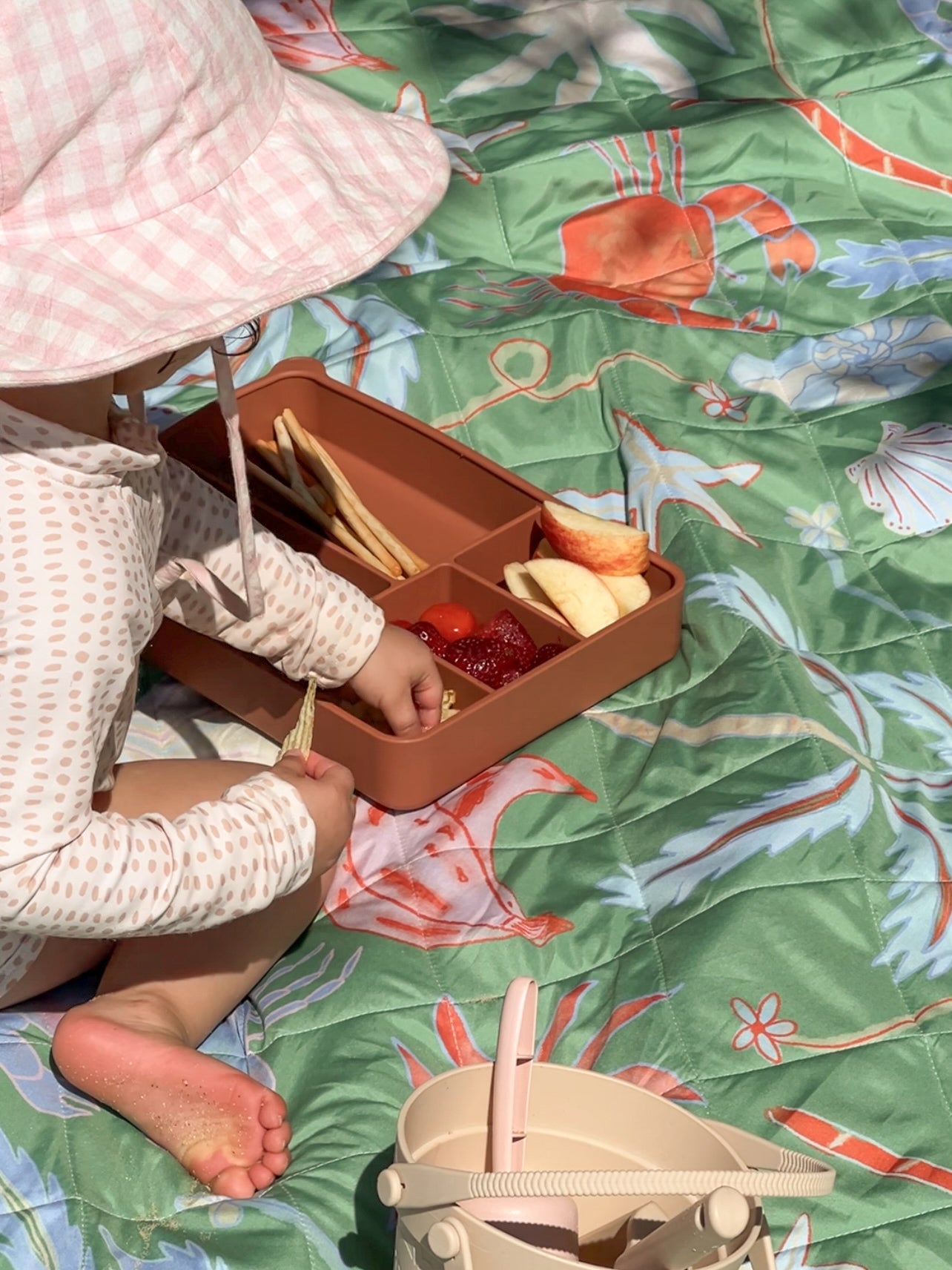 Our new Tidal Green design is inspired by everything we love about being by the ocean - salty swims, collecting shells, chasing crabs and slow days under swaying palms. It features beautiful hand illustrated ocean motifs and is ann essential for any beach or grassy picnic.